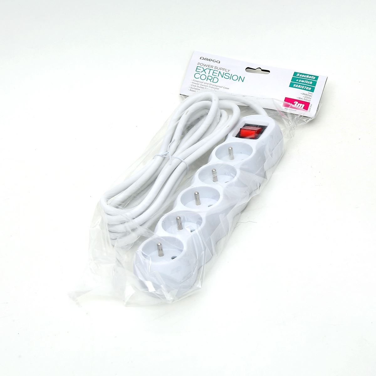 Omega Predlžovací kábel s vypínačom, 16A 5-zásuviek, 3m, biely