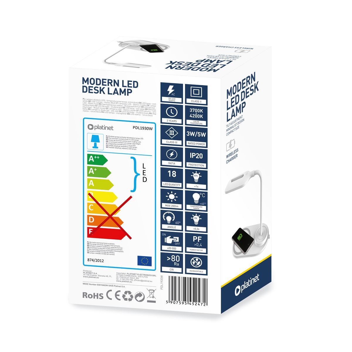 Platinet stolná lapma LED, Wireless Charger, 10W WHITE